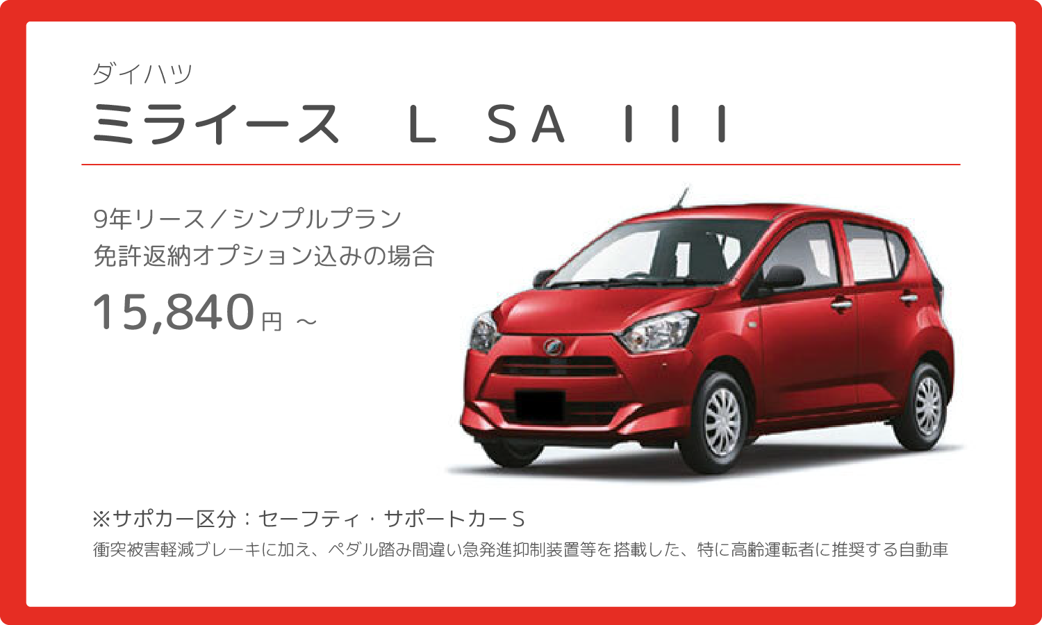 安全運転支援装置が搭載されたサポートカーへの乗り換えを初期費用などの理由からできていなかった高齢者の方々にもカーリースは使いやすいサービスと言えます。