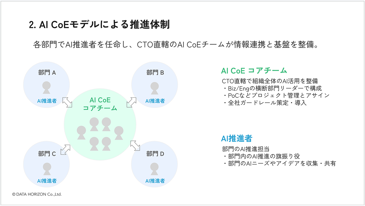 ──2. の「AI CoEモデルによる推進体制」については、どのように体制構築したのでしょうか。