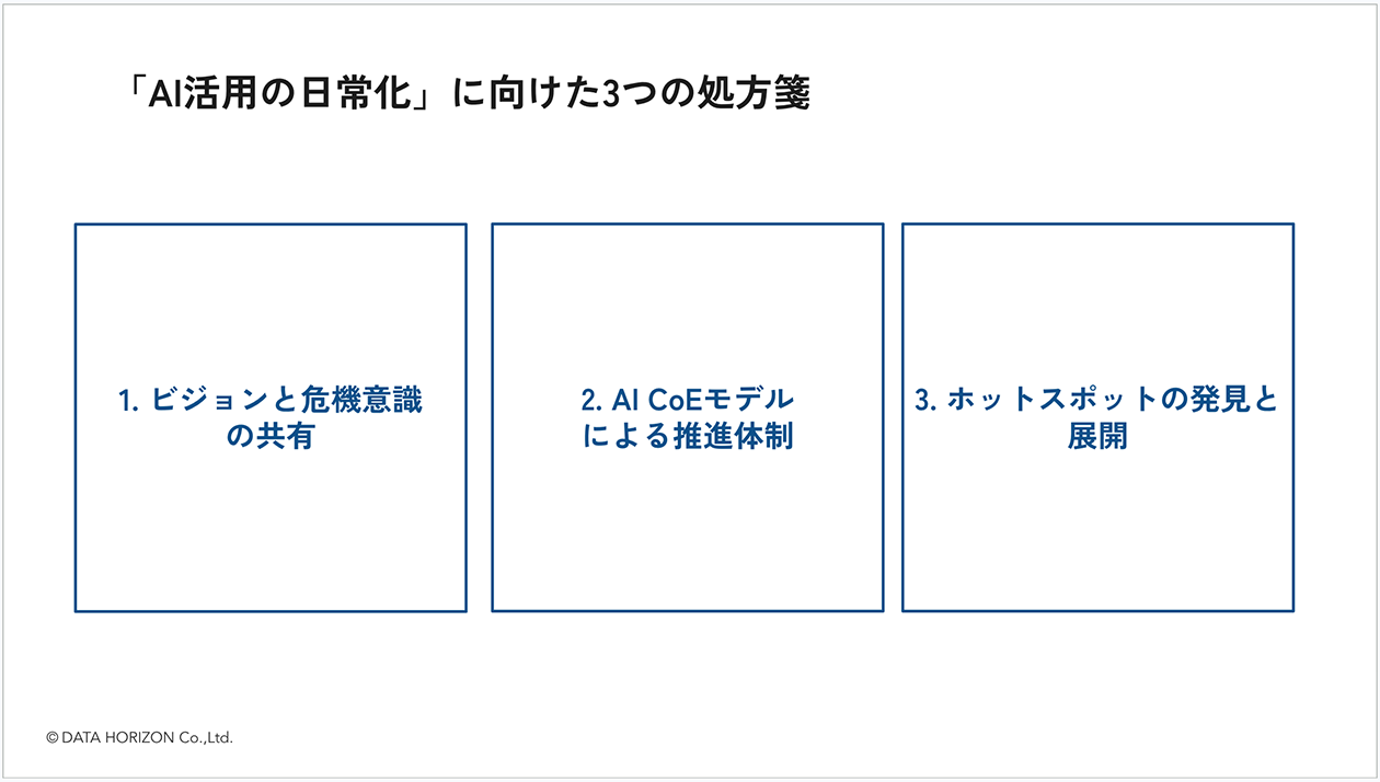 伊藤:まず「AI活用の日常化」に向けて、3つの指針を設けました。